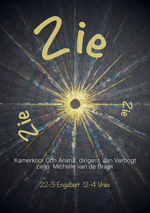 Dit voorjaar vervolgen we onze weg en openen we een nieuwe ruimte met twee concerten onder de titel Zie, met medewerking van Michelle van de Braak op cello. Hier en daar ademt de accordeon mee; eigen kleur gevend in het geheel, bespeeld door onze dirigent. Er klinkt repertoire dat wij niet eerder zongen. We brengen composities van John Tavener (20e eeuw), Antonio Lotti (17e eeuw) , Marc Antonio Ingegneri (16e eeuw) en onze dirigent Jan Verbogt.